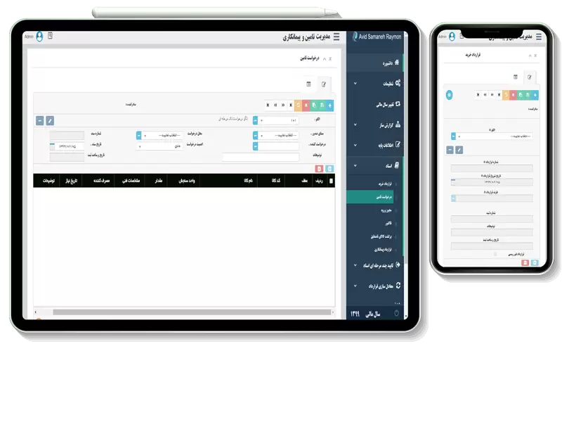 سیستم مدیریت تأمین و پیمانکاری، راهحلی کاملاً یکپارچه و مبتنی بر گردش کار است که به منظور سادهسازی عملیات خرید و پیمانکاری در تمامی مراحل از درخواست اولیه و تأییدها تا تکمیل سفارش و تسویه مالی طراحی شده است. این سیستم از قالبهای سند قابل تنظیم برای اسناد خرید و قرارداد، جریانهای تأیید مبتنی بر نقشهای پویا، پیگیری لحظهای وضعیت درخواستها، مانده قراردادها، پرداختها و شاخصهای عملکرد تأمینکنندگان پشتیبانی میکند. با اتصال بیوقفه به سیستمهای حسابداری، انبار و خزانهداری، امکان صدور چک خودکار، تخصیص منعطف ساختار شکست کار (BOM)، نسخهبندی اسناد، ارزیابی تأمینکننده مبتنی بر شاخصهای کلیدی عملکرد (KPI) و گزارشگیری تحلیلی قدرتمند را فراهم میآورد. این سیستم شفافیت را افزایش داده، کارایی تأمین منابع را بهینه میکند و کنترل دقیق بر تصمیمات خرید و رعایت قوانین قراردادی را ممکن میسازد.