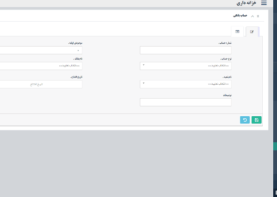 - امکان تعریف نامحدود بانکها، شعب بانکها، حسابهای بانکی، دسته چک، سفته و صندوق