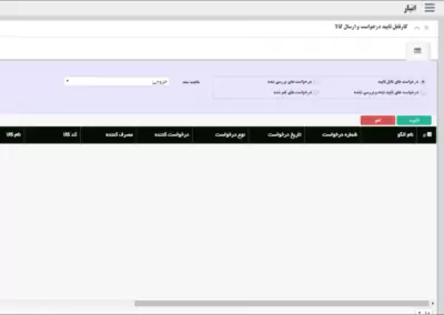 - گزارشات مرتبط با درخواست و ارسال کالا شامل وضعیت درخواستها، ریز درخواستها، لاگ اسناد، بازه زمانی بین درخواست تا ارسال، و گزارش تلرانس بچهای ارسالی